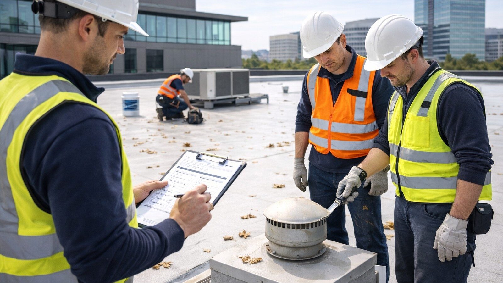 Что входит: плановый осмотр покрытия и примыканий, проверка водостоков и воронок, устранение мелких дефектов, профилактическая герметизация, отчет о состоянии кровли и рекомендации по дальнейшим работам.